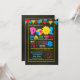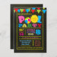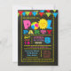 Invitation à la fête de la fille avec du texte coloré et une bordure sur un arrière - plan de tableau de bord. Cette invitation ludique et festive à la piscine est facilement customisée pour votre événement en ajoutant simplement vos détails.