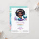 © 2023 Socialite Designs & LICENCORS. Célébrez la journée spéciale de votre petite fille avec une invitation magique personnalisable à la fête d'anniversaire de sirène avec une sirène sucrée afro-américaine. Capturez l'enchantement et la beauté d'un doux thème de sirène qui rendra sa journée encore plus mémorable.