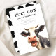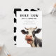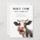 Invitation d'anniversaire pour les enfants de vache sainte avec une vache à l'allure choquée, design minimal mignon avec des empreintes de vache sur le dos pour compléter le look, rappelez-vous qu'il y a beaucoup de finitions de papier à choisir selon la finition que vous aimez.