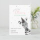 Invitation d'anniversaire de zèbre moderne et amusante pour tout âge. Parfait pour une fête d'anniversaire sur le thème safari ou jungle. Caractéristiques un zèbre noir et blanc, chapeau de fête et couleurs pastel.