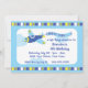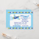 Ce invitation de fête d'anniversaire d'avion à haute volée personnalisable comprend un avion tirant une banderole dans le ciel.