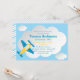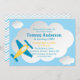 Customisez cette amusante invitation de fête d'anniversaire avec vos détails de fête. Il présente une illustration mignonne de l'avion et des nuages pour la fête d'anniversaire sur le thème de l'avion parfaite pour votre petit aviateur.