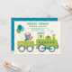 Envoyez aux invités un billet pour voyager avec cette invitation anniversaire ludique de train choo choo sur un fond à pois sarcelle. Un adorable conducteur ours en peluche fait signe depuis une locomotive à vapeur lumineuse tirant un wagon festif avec des étoiles et des ballons. Un lettrage gras "Choo ! Choo !" donne le ton au-dessus des détails de fête personnalisables dans une typographie mixte joyeuse. Chaque ligne de texte peut être personnalisée pour correspondre au jour spécial de votre petit ingénieur.