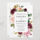La conception présente un bouquet aquarelle élégant ou une couronne de nuances de rouge Bourgogne, Marsala, rose clair pêche, pêche, et plus encore sur des éléments de verdure d'eucalyptus et de feuilles d'or vintage.