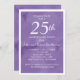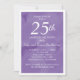 Invitation à une fête d'anniversaire de mariage de 25 ans à l'aquarelle violette. Le texte, la police, la taille de la police et la couleur sont entièrement personnalisables, de sorte que cette carte peut être adaptée pour répondre parfaitement à vos besoins.