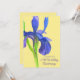 Une invitation de fête d'anniversaire de mariage de 25 ans avec un iris joli, décorée avec une fleur d'iris aquarelle peinte à la main dans des tons élégants de bleu royal et de violet sur un fond jaune doux. L'iris est une fleur représentant l'anniversaire de mariage de 25 ans. Dans le langage des fleurs, l'iris représente la foi, la valeur et la sagesse.