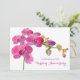 Une jolie invitation de fête d'anniversaire de mariage de 25 ans décorée d'une orchidée peinte à la main à l'aquarelle dans des tons riches de rose fuchsia et de pourpre prune. Les orchidées roses sont la fleur traditionnelle des 14e et 25e anniversaires de mariage d'un couple. Dans le langage des fleurs, l'orchidée représente le respect et l'élégance.