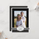 Mettez en vedette le couple célébré avec une photo de mariage originale ou une photo d'aujourd'hui sur cette charmante invitation de fête avec carte photo en noir, blanc et argent. Un texte élégant avec un fond subtil à rayures de smoking et un accent de ruban faux sur le devant qui présente une grande photo du couple spécial et constitue une belle présentation pour la famille et les invités. Chaque ligne de texte est facilement personnalisable pour répondre parfaitement à vos besoins et à vos plans de fête.