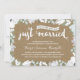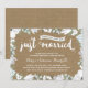 Cette invitation d'anniversaire de mariage de 35 ans élégante et moderne présente une belle calligraphie au pinceau, de belles fleurs bleues et blanches, une typographie qui indique "Juste mariés (il y a trente-cinq ans !)", et un fond en papier kraft imprimé.