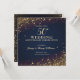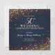 Cette invitation à la fête d'anniversaire de mariage de 50 ans est conçue sur un fond sombre avec des points de confettis dorés et du texte de couleur dorée (recto et verso). Pour personnaliser, il suffit d'insérer vos informations dans notre modèle facile.