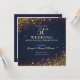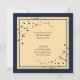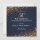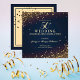 Invitation de fête d'anniversaire de mariage de 50 ans dorée conçue sur un fond de couleur sombre avec des points de confettis dorés et du texte de couleur dorée. Le verso est décoré de reflets dorés, d'étoiles de couleur sombre et de texte. Pour personnaliser, il suffit d'insérer vos informations d'événement dans notre modèle facile en remplaçant le texte d'exemple.