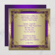 Invitation de fête d'anniversaire de mariage de 50 ans élégante avec des tourbillons violets et or. Cette belle invitation de fête d'anniversaire de mariage de 50 ans violet et or est facilement personnalisable en ajoutant vos détails d'événement, style de police, taille de police et couleur, et libellé. Vous pouvez choisir la couleur du verso - violet ou or, en supprimant simplement celui que vous ne voulez pas.
