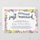 Cette invitation d'anniversaire de mariage de 70 ans élégante et moderne présente une belle calligraphie au pinceau ; de magnifiques fleurs roses, violettes et jaunes ; et une typographie rustique qui dit "Juste mariés (il y a soixante-dix ans !)."