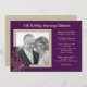 Invitez des invités à une célébration d'anniversaire de mariage d'argent ou d'or / cérémonie de renouvellement de vœux avec un modèle d'invitation personnalisé. Personnalisez facilement les cartes avec des fleurs de lilas violet foncé et un cadre à l'aspect toile de jute qui contient une photo du couple. Les lilas violets ornent le coin inférieur et le verso est beige pour correspondre à la couleur du cadre. La police de caractères script moderne est ajoutée sous forme de paragraphe avec autant ou aussi peu de mots que nécessaire.
