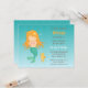 À la gentillesse de la fête d'anniversaire des filles avec une invitation à la fête d'anniversaire sous-marine colorée et mignonne! Cet invitation est livré avec une mignonne petite sirène aux cheveux orange avec une étoile jaune comme accessoire capillaire et coquilles de palourdes comme bikini. Un petit cheval de mer jaune nage à ses côtés. Un motif ondulé pour arrière - plan. Personnalisez facilement avec les détails de votre fête sur l'espace fourni. Idéal pour les filles d'anniversaire qui aiment sous la mer ou les thèmes de l'imaginaire sirène.