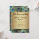 Invitation de fête d'anniversaire personnalisable pour n'importe quelle année... Élégant et raffiné fond de plume de paon dans des couleurs riches et saturées de bleu royal, or cuivré et vert émeraude. Le paon est un oiseau majestueux aux plumes ornementales qui fait une belle décoration pour une fête d'été ou toute autre occasion. Les dégradés dorés à l'aspect métallique ajoutent une touche de glamour et de raffinement.