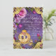 Invitation à une fête d'anniversaire de princesse de conte de fées avec de jolies roses roses sur un fond violet scintillant avec un beau carrosse royal de princesse. Vous pouvez facilement personnaliser cette belle invitation de fête d'anniversaire de princesse rose et violette pour votre événement en ajoutant simplement vos détails dans le style de police et la couleur, et la formulation de votre choix. Il s'agit d'une conception imprimée sans vrais bijoux, rubans, paillettes, etc.