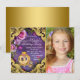 Invitation à une fête d'anniversaire de princesse il était une fois avec un magnifique carrosse royal doré sur un beau fond floral violet et or. Vous pouvez facilement personnaliser cette invitation de fête d'anniversaire de princesse de conte de fées violet et or pour votre événement en ajoutant simplement vos détails dans le style de police et la formulation de votre choix. Il s'agit d'une conception imprimée sans véritable paillettes, etc.