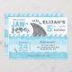 Invitation à l'anniversaire du requin. Le texte est entièrement personnalisable. Vous pouvez modifier les couleurs et les styles des polices.