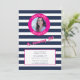 Ahoy, matey ! Célébrez un anniversaire nautique dans le style avec cette invitation ludique et vibrante. Avec un arrière - plan à rayures marines bleu et blanc élégant, un cercle rose vif qui met en valeur la photo de la fille d'anniversaire et un thème ludique "Nauti-Girl", ce design est parfait pour un bain d'anniversaire. Personnalisez-le avec les détails de votre fête et faites un éclat avec cette invitation mémorable qui capture l'essence d'une aventure maritime. Ce design est parfait pour un 30ème anniversaire, mais peut être customisé pour n'importe quel âge. Partez pour une fête amusante !