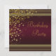 Cartes d'invitation de fête d'anniversaire élégantes de vin rouge de Bourgogne et d'or. Cette belle invitation de fête de couleur bordeaux et or est facilement personnalisable pour votre événement en ajoutant vos détails d'événement, style de police, taille et couleur de police, et libellé. Veuillez noter que tous les autocollants, cartes et modèles d'invitation que vous trouverez sur Zazzle sont des graphiques imprimés sans véritables bijoux, rubans, reliefs, gaufrures ou pièces ajoutées.