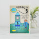 Invitation à la fête d'anniversaire d'enfants avec astronaute sur fusée lunaire. Cette invitation avec un astronaute et sa fusée sur une planète. Le garçon est dans un costume d'astronaute bleu et la fusée bleue porte le numéro d'âge. L'astronaute garçon rend cela génial comme invitation à une fête d'anniversaire pour un garçon.
