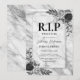 Cartes d'invitation drôles pour les 30 ans avec une pierre tombale grise argentée, des fleurs aquarelles de style funéraire rustique et un modèle de texte élégant pour la célébration d'anniversaire facile à personnaliser.