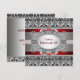 Damas noir et blanc avec ruban rouge et invitation élégante pour une fête d'anniversaire des 40 ans fabuleuse et classe avec femme argentée au premier plan.