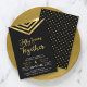 Invitation élégante pour un 50e anniversaire de mariage avec un motif géométrique chevron et les mots "Cinquante ans ensemble" en or faux sur fond noir. La carte comprend un motif assorti au verso. Découvrez d'autres articles assortis ici http://www.zazzle.com/collections/modern_faux_gold_chevron_celebration_collection-119531050277382712?rf=238364477188679314
