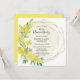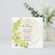 Invitation parfaite pour un 50ème anniversaire de mariage de printemps ou d'été. Les roses jaunes et les fleurs de mimosa ornent un cadre géométrique élégant doré. Tout le texte peut être modifié.