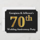 Cette conception d'invitation présente le nombre ordinal "70ème" avec une apparence faussement dorée. Elle présente également des noms personnalisés. Elle pourrait être utilisée pour la fête du soixante-dixième anniversaire de mariage d'un couple marié.