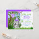 Cette conception d'invitation d'anniversaire adorable présente une scène de jungle avec un tigre blanc et des fournitures de fête. Personnalisez facilement avec toutes vos informations de fête !