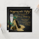 Des plumes de paon élégantes, du champagne d'or et de la chaussure à talon haute parties scintillant d'or sur l'invitation de la fête de 50 ans. Vous pouvez facilement customiser cette belle invitation de fête d'anniversaire paon en ajoutant vos détails dans le style de police et la couleur, le libellé et la disposition de votre choix.