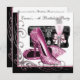 Elégant rose et noir talon haute chaussures, sac à main et verre de champagne invitation fête d'anniversaire. Cette belle invitation de fête d'anniversaire aux femmes rose et noir est facilement customisée pour votre événement en ajoutant vos détails d'événement, le style de police, la taille et la couleur de police et le libellé.