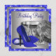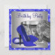 Elégante perles d'argent et haute chaussure de talon royal bleu anniversaire invitations fête. Cette belle invitation de fête d'anniversaire bleu et argent royal est facilement customisée pour votre événement en ajoutant les détails de votre événement, le style de police, la taille et la couleur de police et le libellé.