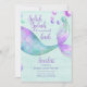 Invitation d'anniversaire Mermaid Bash avec jolie sirène sous le thème de la mer. Le design est composé d'une queue de sirène et de bulles océaniques dans les tons d'aquarelle de vert menthe violet et turquoise et est intitulé "éclabousser c'est un bain de sirène". Facile à modifier pour toute fête d'anniversaire de fille d'âge ou de piscine d'été et parfait pour sirène, princesse girly et sous les thèmes de la mer.