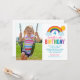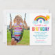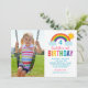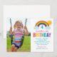 Cette invitation de photo d'anniversaire arc-en-ciel joyeuse comprend un fond blanc croquant avec un arc-en-ciel brillant, un soleil doré et des nuages duveteux arqués sur un espace pour la photo de votre enfant. Les lettres "Anniversaire" en couleur arc-en-ciel gras font une déclaration amusante, tandis que la typographie script et impression affiche les détails de la fête. Tout le texte est entièrement personnalisable pour correspondre au jour spécial de votre petit.