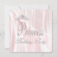 Satin rose et blanc avec superposition transparente scintillante et carton d'invitation à la fête d'anniversaire de la princesse rose élégante avec diadème en diamant.