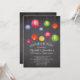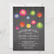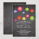 Invitation de fête d'anniversaire amusante avec des lanternes colorées estivales posées sur un fond à tableau noir tendance avec un dos coordonné pour un effet supplémentaire spécial. Invitation de jardin barbecue parfait pour tout anniversaire, 25 ans, 30 ans de mariage, 40 ans, 50 ans, 10 ans, 5 ans, 60 ans ou 75 ans.