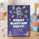 Un design mignon avec des robots dans l'espace. Personnalisez les détails pour une célébration d'anniversaire chic !