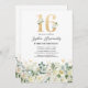 Invitation Fête d'anniversaire des seize ans aux fleurs verte