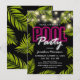 Plongez dans votre fête estivale glamour avec nos invitations de fête au bord de la piscine ou de la plage pour adultes conçues de manière luxueuse. Le fond noir élégant, qui peut être personnalisé selon vos préférences, associé à des guirlandes lumineuses scintillantes et à des feuilles de palmiers tropicaux élégantes, est garanti pour impressionner. Le motif d'enseigne néon rose et blanc ajoute une touche originale au design. Personnalisez facilement pour répondre aux besoins de votre fête et laissez ce modèle moderne faire de votre fête l'événement dont on parle en ville.