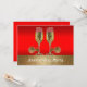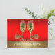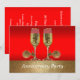 Cette invitation sur le thème western comporte des verres à champagne avec des éperons sur fond rouge et or. Le texte sur le devant indique "Anniversary Party" (Fête d'anniversaire de mariage), mais il peut être modifié en utilisant le bouton de personnalisation pour modifier le texte.