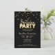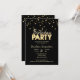 Personnalisez ces cartes d'invitation de fête d'anniversaire modernes pour votre prochaine célébration. FÊTE dans les lumières de théâtre brillantes avec faux confettis d'or. Anniversaire dans une écriture à la mode. Le dos de la carte a CHEERS à nommer (modifier). Tout le texte peut être modifié (police, taille, couleur). Ajoutez le mot anniversaire de surprise au lieu de Anniversaire seulement. Unisex ; pour garçon (hommes) ou fille (femmes).