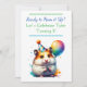 Bleu et le hamster vert thème de l'anniversaire de fête du garçon Invitations. Un hamster aquarelle tenant un ballon. Idéal pour les enfants de tout âge !