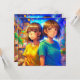 Invitations de fête d'anniversaire pour la fête d'anniversaire de jumeaux dans un thème mignon de dessins animés.