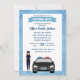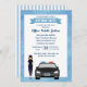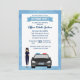 Invitation à la fête d'anniversaire d'une femme officier avec une femme officier et une voiture de police. Ajoutez le nom de son département sur la plaque d'immatriculation avant. Montrez votre appréciation à votre policière préférée le jour de son anniversaire avec cette invitation sur le thème de la police.