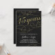 Cette invitation à une fête d'anniversaire de mariage élégante de 15 ans présente de jolies fioritures de calligraphie, une fausse feuille d'or et un fond noir chic.
