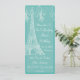 Voici une invitation élégante inspirée de Paris, France, qui présente la Tour Eiffel et la Fleur de lis. Utilisez-la pour un anniversaire, une carte de sauvegarde de date, une fête d'anniversaire de mariage, et plus encore. Personnalisez avec votre propre texte, style de police et couleur de police pour s'adapter à votre occasion spéciale. Le design est présenté sur les deux côtés de l'invitation.