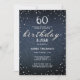 Un modèle d'invitation à une fête d'anniversaire simple, moderne, élégant et chic avec un fond en denim bleu, le mot ANNIVERSAIRE recouvert de diamants blancs (simulés, pas de vrais diamants) et en écriture calligraphique moderne, et une typographie rustique en blanc. Un design chic "denim et diamants" pour une jeune femme pour son 60e anniversaire !